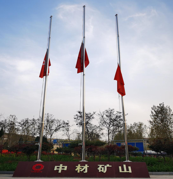 4月4日上午10时,为表达对抗击新冠肺炎疫情斗争牺牲烈士和逝世同胞的深切哀悼,泗水分公司组织所有员工降半旗致哀,矿山施工现场停工默哀并鸣笛三分钟。