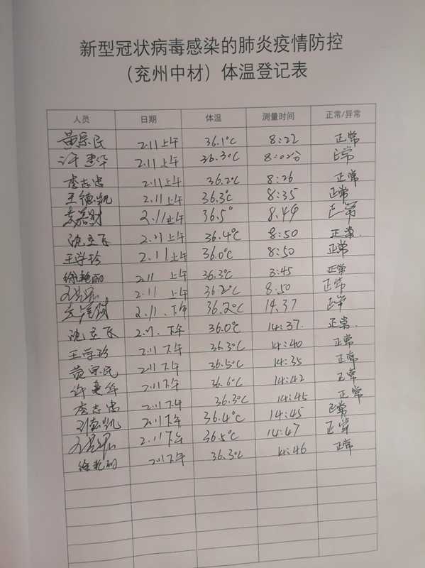 3、利用微信建群,做好公司疫情信息的搜集统计与分析工作,每日报告体温由专门负责人统计信息并报送总公司、业主、当地有关部门。