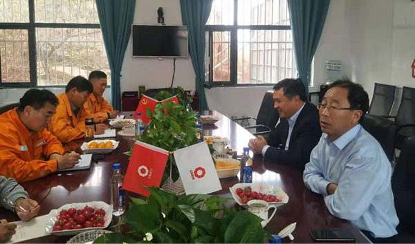 10月24日,兖州中材建设有限公司总经理柯升、副总经理金书明,莅临兖州中材兰陵分公司检查指导工作。 柯升、金书明一行,先后对兰陵分公司办公生活区和矿山生产现场进行了检查,对兰陵分公司几个月来的发展、变化给予了肯定,对项目形象建设给予高度评价,体现了央企应有的形象。  兰陵分公司项目经理龚士朋对入场以来所做的各项工作及下一步工作计划做了汇报。 柯升在肯定分公司取得成果的同时,对分公司提出了更高的要求,他指出:一是提高意识、认清形势,注重绿色矿山建设,围绕“绿水青山就是金山银山”的思想开展工作;二是行动要跟上,让行动跟上意识的节奏,一切思想、意识最终都要落实在行动上;三是业务要精湛,多管齐下,解决生产中的遗留问题。