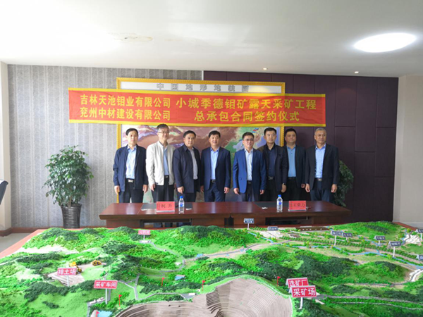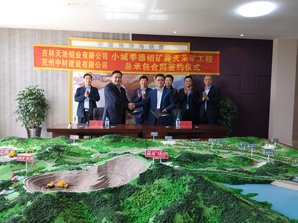 2019年5月28日8时58分,吉林舒兰小城季德钼矿露天采矿工程总承包合同签约仪式在吉林天池钼业有限公司举行。参加签约仪式的还有舒兰市副市长明继国、吉林天池钼业和兖州中材相关负责人等。