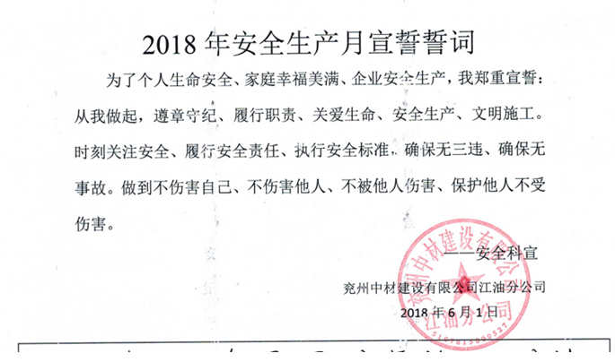 今年6月是全国第17个“安全生产月”, 6月1日,兖州中材江油分公司安全生产月活动启动仪式在项目部会议室隆重召开,本次活动主题为“生命至上、安全发展”。项目部领导、员工共计40余人参加了本次安全生产月启动仪式。 会上,安全科传达《2018年安全生产月活动实施方案》并对安全工作进行阐述与部署。组织员工观看安全教育宣传片,通过对典型真实案例的生动再现,使员工真正从思想深处懂得安全,重视安全,时时刻刻想着安全,增强职工安全意识,强化安全理念,提高职工的安全素质。项目副经理强调,安全是社会经济发展的需要,是企业自身发展的需要,是从业人员参与劳动的需要。要树立“红线意识”,坚决落实岗位责任;加强安全教育宣传,定期排查隐患,完善安全体制建设,依法治安、依法作业;坚持“安全第一、预防为主、综合治理”的方针,持续有效推动公司安全生产形势稳定发展。项目经理要求,一是要加强领导、高度重视,正确把握当前安全形势,突出落实安全责任主线,深刻认识开展“安全生产月”活动的重要意义;二是要围绕主题、协调推进,大力宣传党和国家的安全生产方针政策、法律法规,通过开展一系列安全活动,进一步营造“关爱生命、关注安全”的安全氛围;三是要扎实开展、狠抓落实,以“安全生产月”活动为契机,在保持双体系有效运行的同时做到统一思想、提高安全意识,为公司安全稳定、和谐发展提供有力保障;四是要强化培训、提升意识,围绕国家法律法规,开展员工安全教育培训,全面提升全员综合安全素质及法制意识,强化依法治企、依规治企。会议最后,项目部组织全体员工进行安全月宣誓和签名,安全生产月正式拉开帷幕。