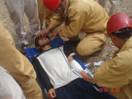 兖州中材宣威分公司现场救援应急演练 了加强广大职工安全意识,提高现场施工人员应对突发事故的能力,根据兖州中材宣威分公司制定的《土石方坍塌事故救援应急预案》,于2012年6月20日进行了救援应急演练。 本次演练的目的:是在突发事故发生时,现场职工知道怎样救援;救援的程序;明确救援负责人、救援报告人;如何在救援的过程中避免发生二次伤害等。 本次演练的主要内容是:演示不同的伤势所需要采取的相应的急救方法,和救援器械的使用方法,及紧急情况下利用现场不同的救援车辆担架上车的方法。力求以最快的速度、最安全有效的措施救援受伤人员。使事故的损失降到最低。 首先讲解了本次演练的目的、内容、注意事项。接着对急救包、担架的使用方法和主要事项进行了讲解和演示。肢体受伤后的简单处理、包扎方法进行示范。然后练习了紧急情况下,如何利用现场车辆救护伤员、和担架上车的方法。 在演练结束后所有参加演练的人员对整个演练过程进行了总结,讲述了各自对演练的看法并提出了演练过程中的不足之处及改进措施,使事故救援应急预案得到了进一步的完善。 通过本次演练使现场职工熟悉了救援程序和基本的救护方法。初步掌握了救援器械的使用方法和注意事项。有效的提高了职工的救护技能。达到了本次演练的预期效果