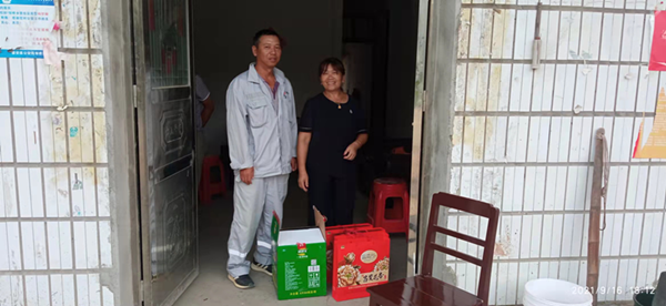 9月16日,分公司购买食用油、月饼等物品,看望慰问周边村民,深入了解村民生活情况,在得知一村民家排水不畅,每到下雨时雨水就会流进家里,分公司人员现场查看情况并购买材料,改善村民房屋周边排水条件,为村民解决实质问题。