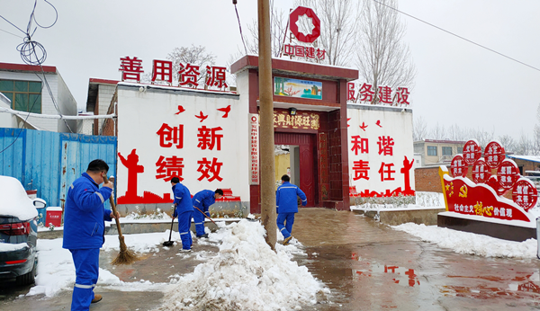 2021.2.25白坪分公司迎来了开春后的第一场雪,俗话说:瑞雪兆丰年,在大家欣喜银装素裹的同时,厚厚的积雪也影响了出行,在分公司领导带领下,党员同志模范带头,大家分工明确、不畏寒冷,拿上铁锨、扫帚等扫雪工具迅速投入到铲雪除冰行动中,经过近一小时的铲雪工作,分公司出入口及附近村民出行干道积雪清理干净,消除了道路出行安全隐患。