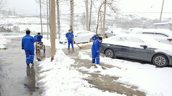 雪天寒冷,也抵挡不住全体职工对生活和工作散发的热情和温暖,“铲雪官”们在白坪分公司成为一道亮丽的风景线。