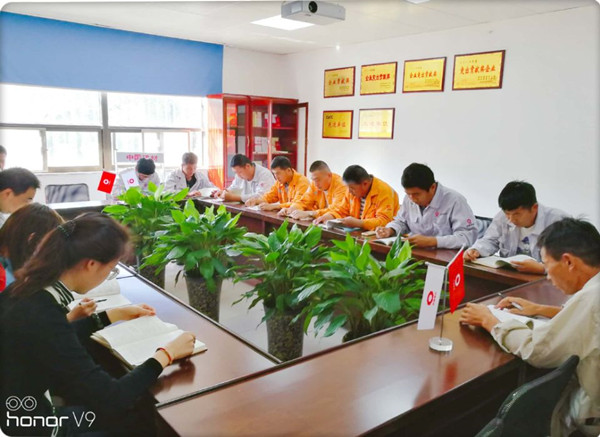 会上,项目经理刘进德带领大家认真学习了刘书记在中材矿山建设有限公司开展的“不忘初心、牢记使命”主题教育部署会上的重要讲话并学习了《习近平关于“不忘初心、牢记使命”论述摘编》《习近平新时代中国特色社会主义思想学习纲要》两本书籍。